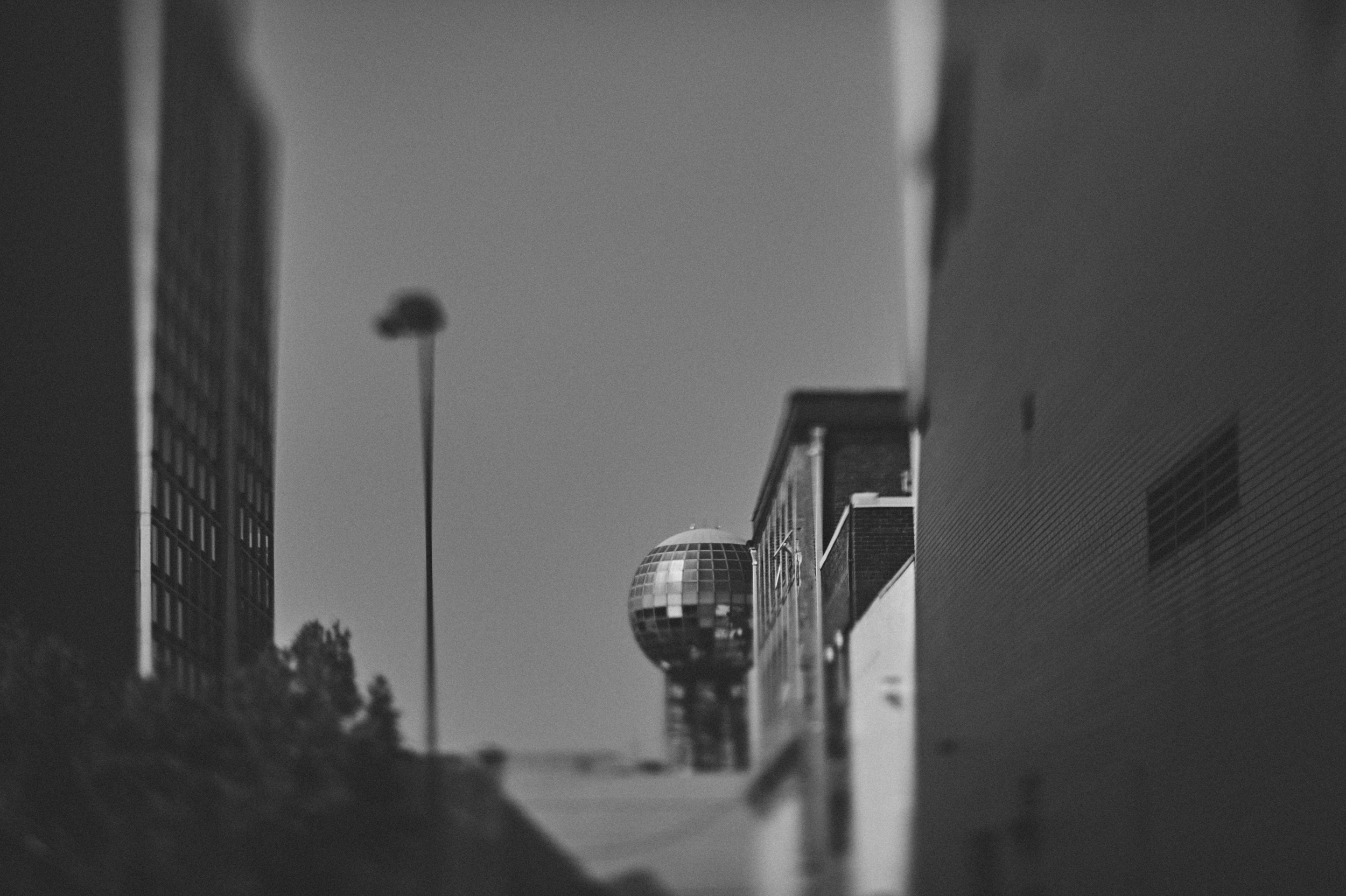 To my left was something I hadn’t even bothered to look at before - a deep green building surrounded by garbage cans. The doors were closed, and I could smell it from where I stood. This prop turned out to be a stinky godsend. I knew from experience that a similar green looked great in black and white - netting a 60% gray — I also knew that the red in her costume would look amazing if I decided to run color versions of my prints.
